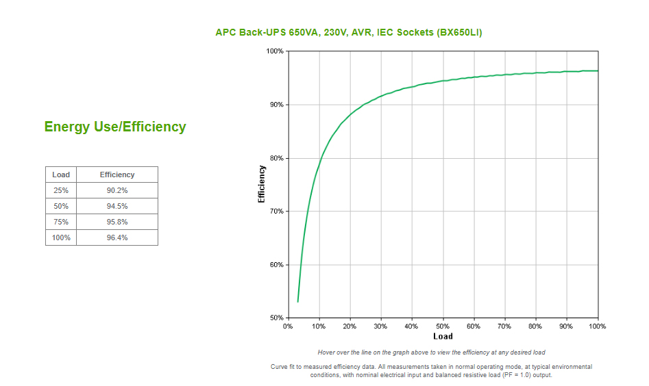 Runtime by load for : BX650LI